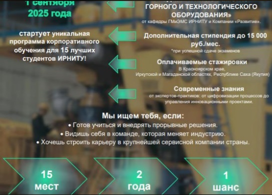 Стать участниками программы могут старшекурсники специальностей «Горные машины», «Подъёмно-транспортные, строительные, дорожные средства и оборудование» и др.