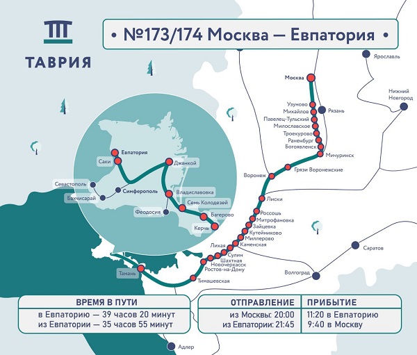 Вновь ежедневно будет выполнять рейсы скорый поезд №173/174 сообщением Москва – Евпатория.