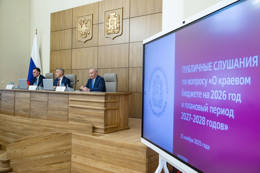 В Законодательном Собрании Красноярского края 25 ноября прошли публичные слушания по законопроекту о краевом бюджете на 2026 год и плановый период 2027–2028 годов. Формат мероприятия позволяет жителям региона оценить необходимость включения в расходную часть предлагаемых правительством и депутатами инициатив, ознакомиться с принципами формирования бюджета и внести свои предложения.