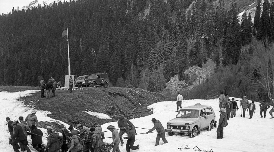 Фото: Георгий Анастасиади. Майский поход накануне Дня Победы к воинскому обелиску на развилке туристских троп перевалов Аишхо-1 и Аишхо-2, 1985 год.