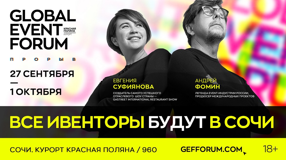 Андрей Фомин, соорганизатор GEF: «Первый GLOBAL EVENT FORUM в Красной Поляне был тестом и назывался «Перекличка», поскольку мы хотели понять, кто остался в рынке и готов работать. «Перекличка» стала мощным стартом для следующей встречи, которую мы назвали «Прорыв». Сейчас индустрия успешно отвечает на вызовы времени и, несмотря ни на что, мы видим большой рост событийного потенциала».